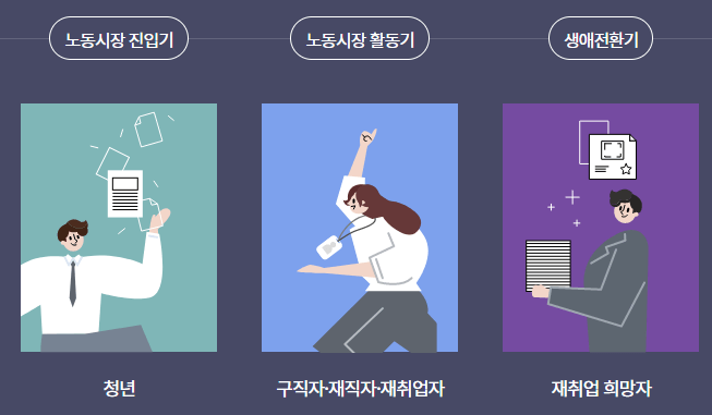 일자리를 구하고 있는 취업준비생부터, 업무역량을 향상시키고 싶은 재직자, 다른분야로 이직을 원하는 이직 희망자, 은퇴 후 새로운 인생을 준비하는 중장년, 새로운 경력을 써내려가야 할 여성들까지 내일배움카드는 국민 누구나 신청이 가능합니다.